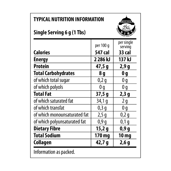 Crafted with an uncompromising commitment to purity, this formula contains no artificial preservatives, additives, fillers, or flavourings—only whole-food ingredients processed minimally to retain their nutritional integrity. MJC Halaal certified (Certificate HT 5558), it reflects the highest standards of quality assurance and ethical sourcing.