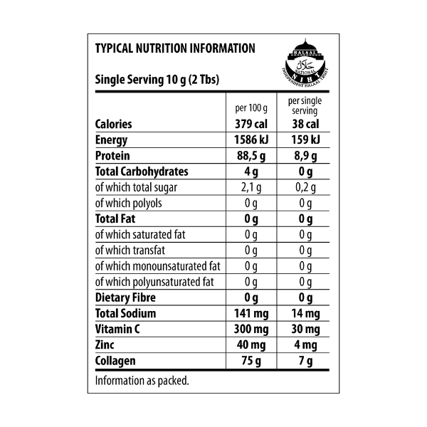 his product is crafted without synthetic preservatives, artificial additives, inert fillers, or synthetic flavouring agents, ensuring a clean nutritional profile. Manufacturing occurs within a Halaal-certified facility (MJC certification HT 5558), reflecting our dedication to ethical sourcing and production practices. Each batch represents our pledge to deliver a premium supplement free from unnecessary chemical interventions.